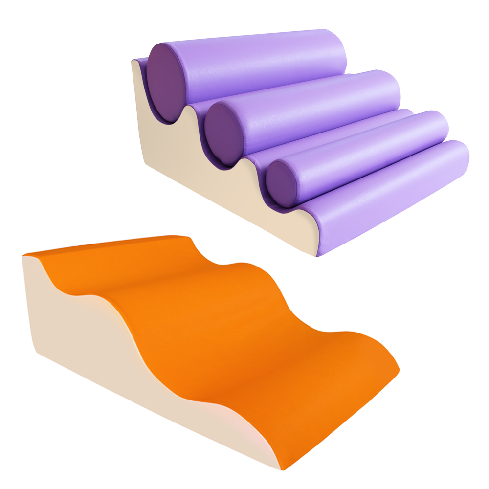Upholstered elements with classic shapes suitable for the creation of islands, paths for the psychomotor skills of children (age group 0/6 years).
