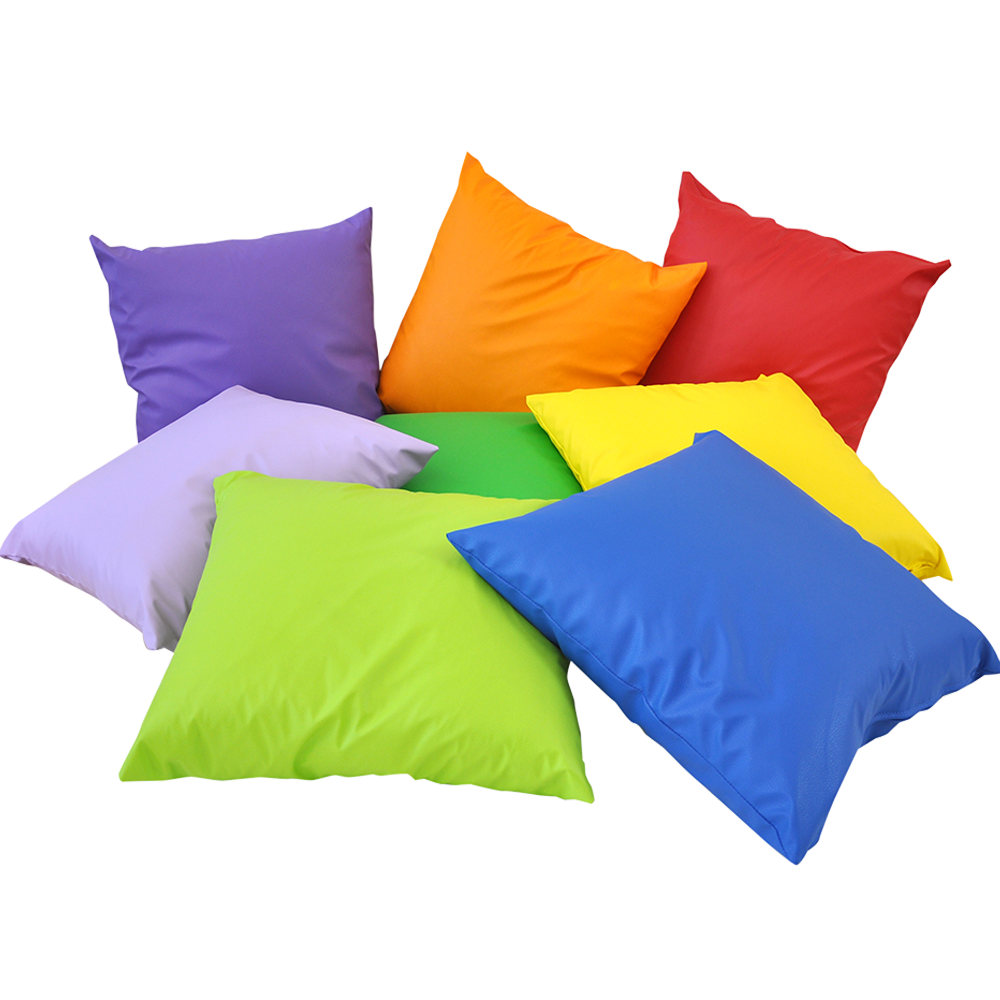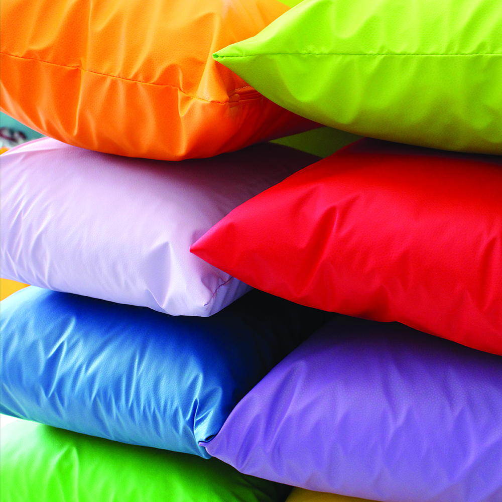 Morbidi cuscini di varie dimensioni e colori, imbottiti con fiocco di poliestere espanso.